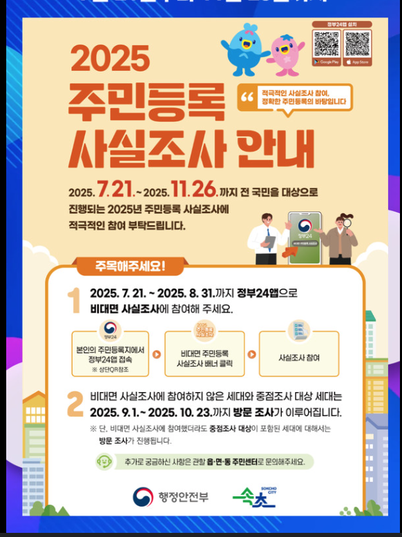- 비대면 조사: 2025년 7월 21일 ~ 8월 31일까지 정부24 앱에서 참여