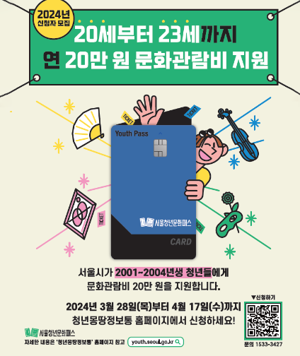 서울시가 연간 20만 원의 문화관람비를 지원하는 ‘서울청년문화패스’ 2차 모집을 시작했습니다.
