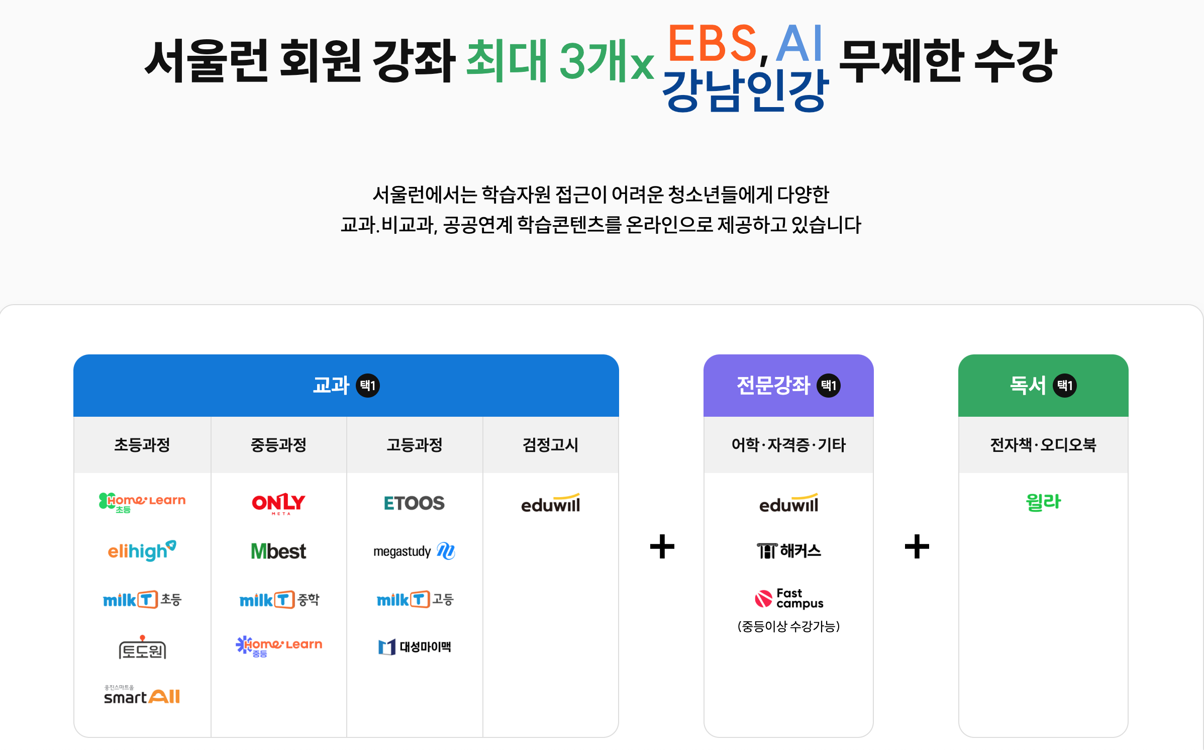 서울런은 중·고생 교재비 지원뿐 아니라 다양한 교육 지원 프로그램을 포함하고 있어,