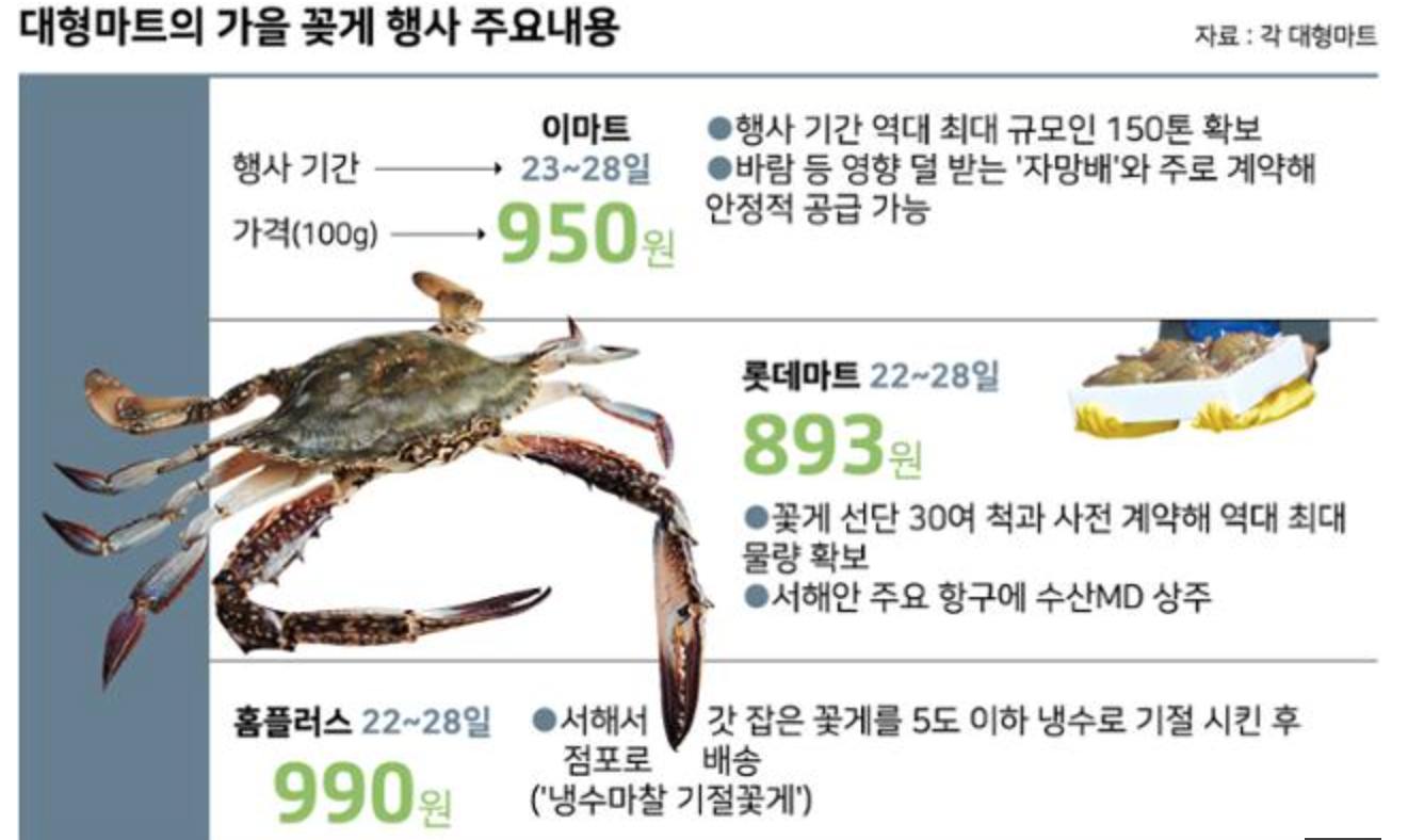 이마트뿐만 아니라 롯데마트와 홈플러스도 가을 꽃게 행사에 뛰어들었습니다.