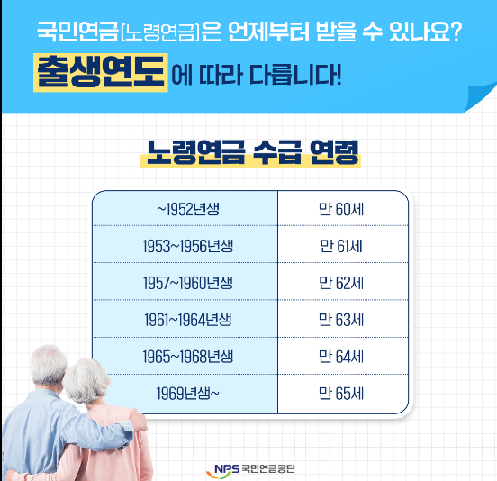 👉 연금 수급 시작 연령과 예상 수급액은 국민연금 예상연금 조회 서비스 에서 확인할 수 있습니다.