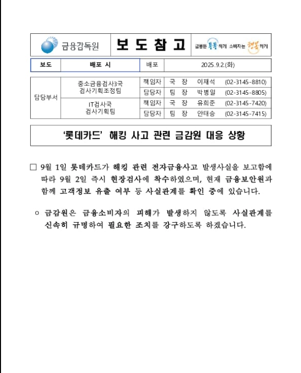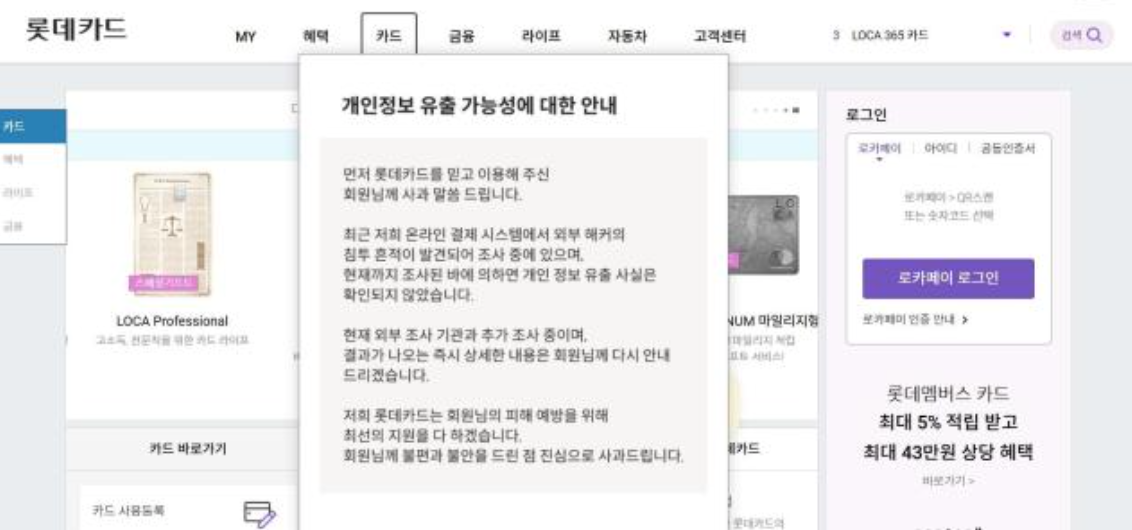 최근 롯데카드 해킹 사건으로 고객님의 카드 정보 유출 위험이 제기되었습니다.