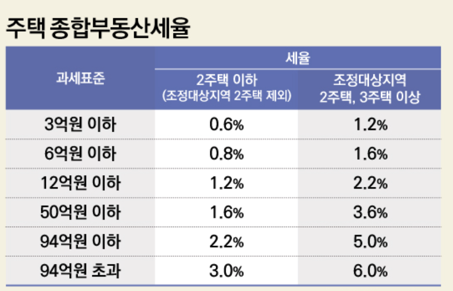 - 주택 과세대상: 공시가격 합계가 일정 기준(6억, 1세대 1주택은 12억)을 초과한 경우.