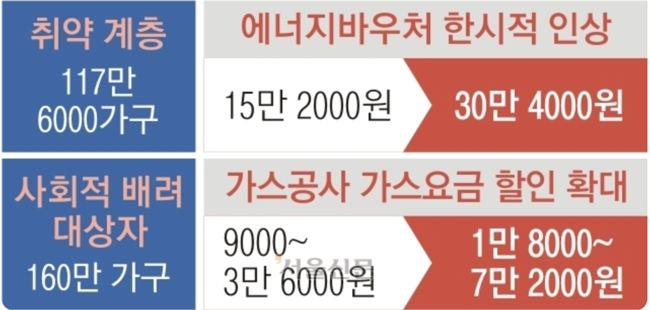 예를 들어 도시가스 사용 가구는 월 최대 20만 원, 등유나 LPG를 사용하는 농어촌 가구는 실사용량에 따라 리터당 지원 단가가 책정됩니다.