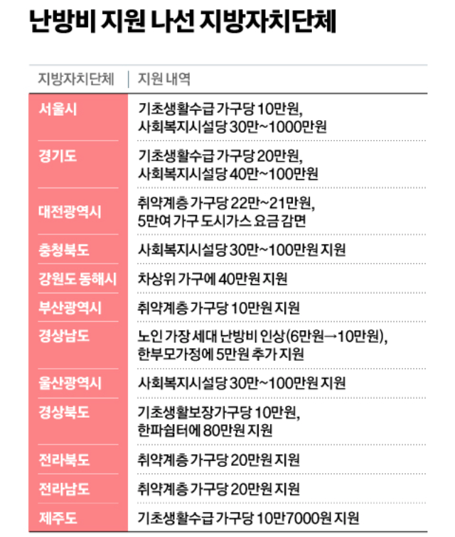 특히 서울, 경기, 부산 등 대도시는 별도의 에너지복지사업을 병행하고 있어 중복 지원이 가능합니다.
