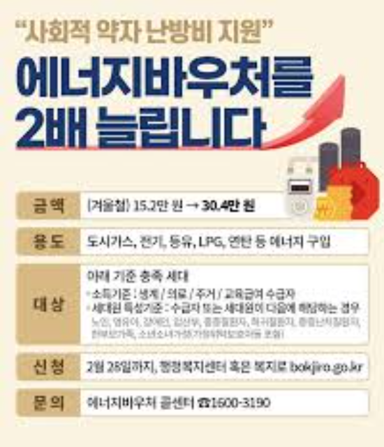 에너지바우처는 난방비지원과 중복 신청이 가능하며, 지원금액은 가구원 수에 따라 달라집니다.