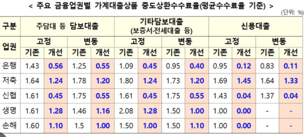 금융위원회 상호금융권 중도상환수수료 인하 발표 바로가기