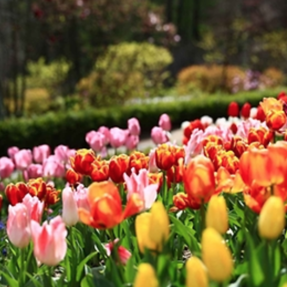 형형색색 튤립이 펼쳐진 광장. 유럽 분위기 물씬 나는 이곳은 가족 단체 사진 찍기에 딱입니다.