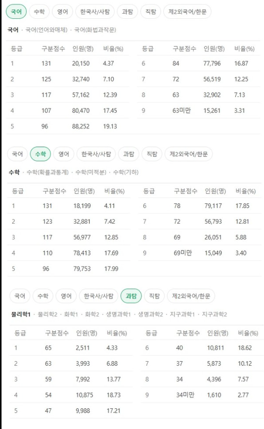 | 탐구 | 과목별 편차 큼 | 과목별 편차 큼 | 과목별 편차 큼 |