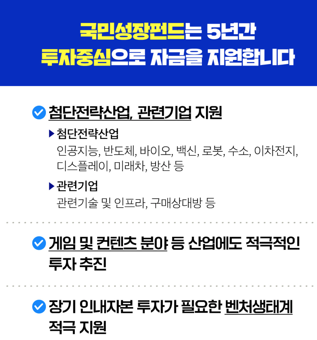 국민성장펀드는 정책적 지원과 미래시장 성장성을 함께 기대할 수 있는 상품입니다.