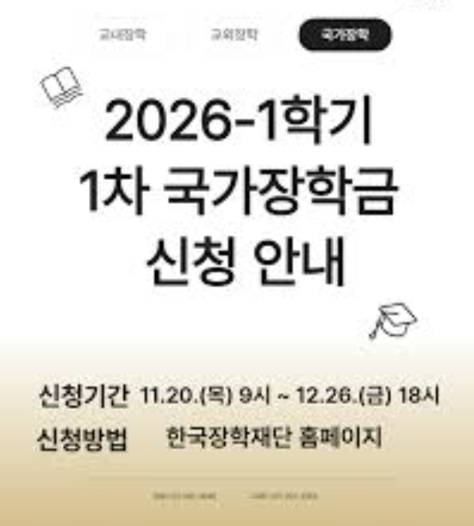- 1학기 국가장학금 1차: 전년도 11월 말~12월.
