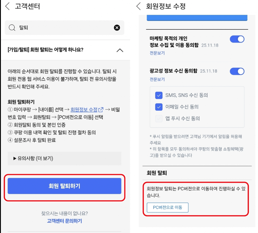 고객센터 검색 → 회원탈퇴 메뉴 진입 루트를 알면 3분이면 충분히 계정을 삭제할 수 있습니다.