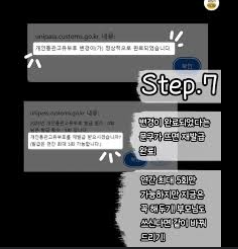 새 번호를 발급받았으면 관세청 시스템 외부(실제 사용하는 사이트)에서 반드시 업데이트해야 통관 오류를 예방할 수 있습니다.