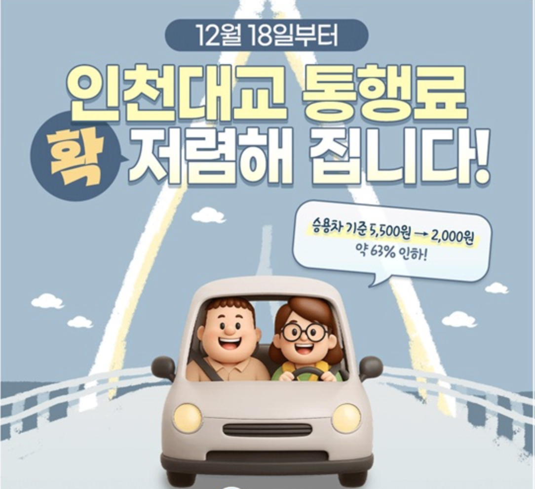 특히 출퇴근 고정 루트로 인천대교를 이용하는 직장인이라면, 이번 통행료 인하는 사실상 고정지출이 줄어드는 효과로 볼 수 있습니다.