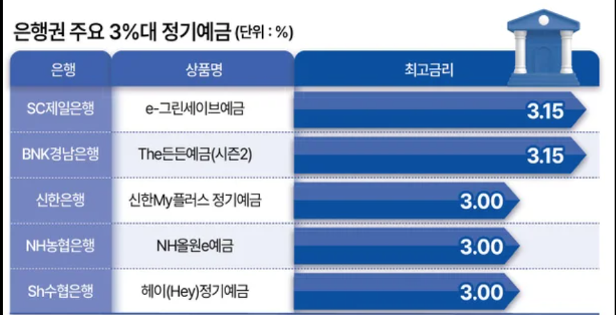그 결과 일부 시중은행과 지방은행을 중심으로 연 3% 수준의 예금 상품이 재등장했습니다.