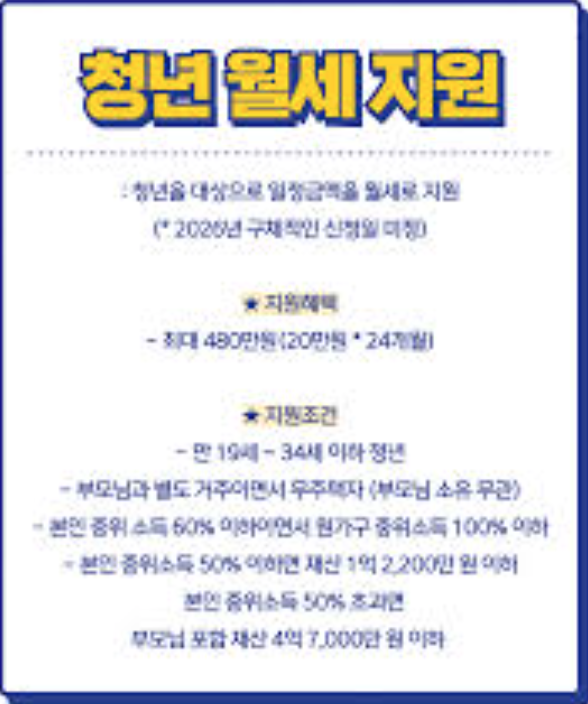 월세 부담이 큰 청년이라면, 지금이라도 본인이 청년 월세 지원 대상자에 해당하는지 꼭 한 번 확인해 보시기 바랍니다.