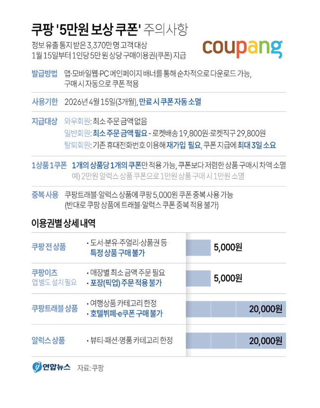 정리하면, 이번 쿠팡보상은 단순한 공지가 아니라 실제 체감 혜택이 가능한 5만 원 규모의 보상입니다.