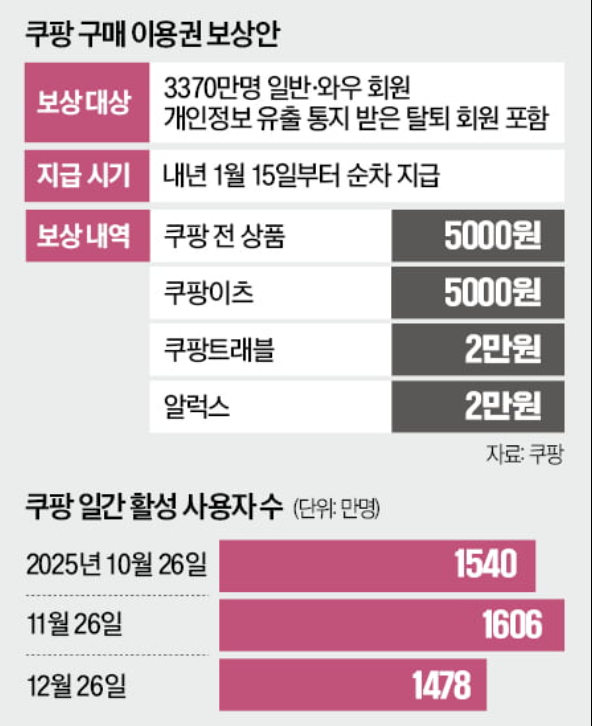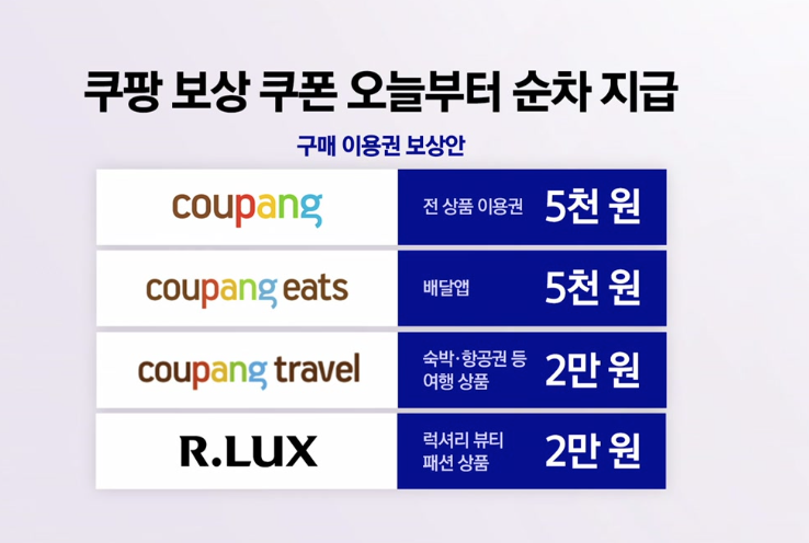 보상은 현금 환급이 아닌 구매 이용권(쿠폰) 형태로 제공되며, 쿠팡 앱 내 관련 배너를 통해 다운로드할 수 있습니다.