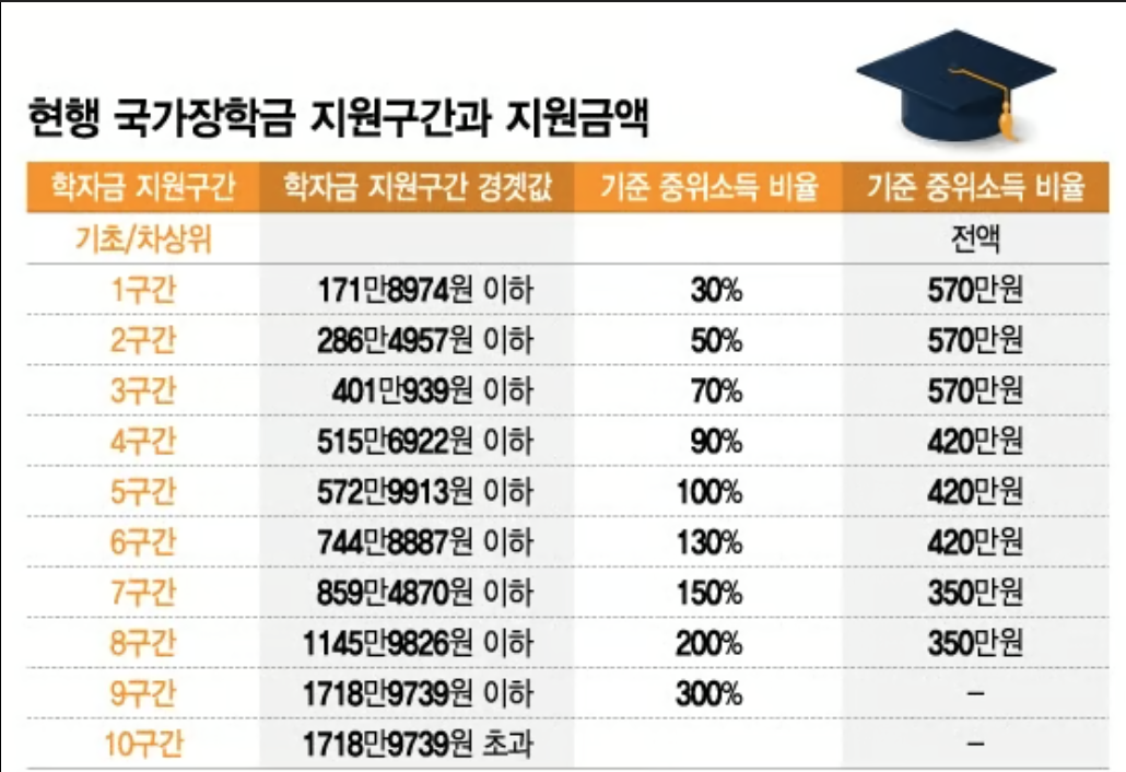 국가장학금은 학생의 가구 소득 수준과 성적에 따라 차등 지급됩니다.