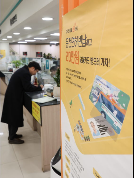 운전면허 반납 어르신 20만원 교통카드 지원...1. 28.부터 신청