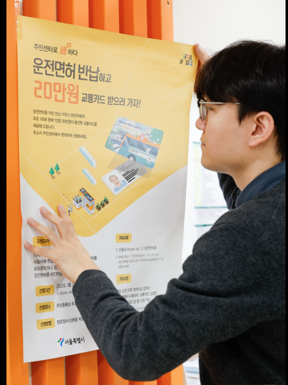 고령 운전자의 교통사고를 줄이기 위해 서울시는 운전면허를 자진 반납한 어르신에게 20만원 상당의 교통카드 혜택을 제공하고 있습니다.
