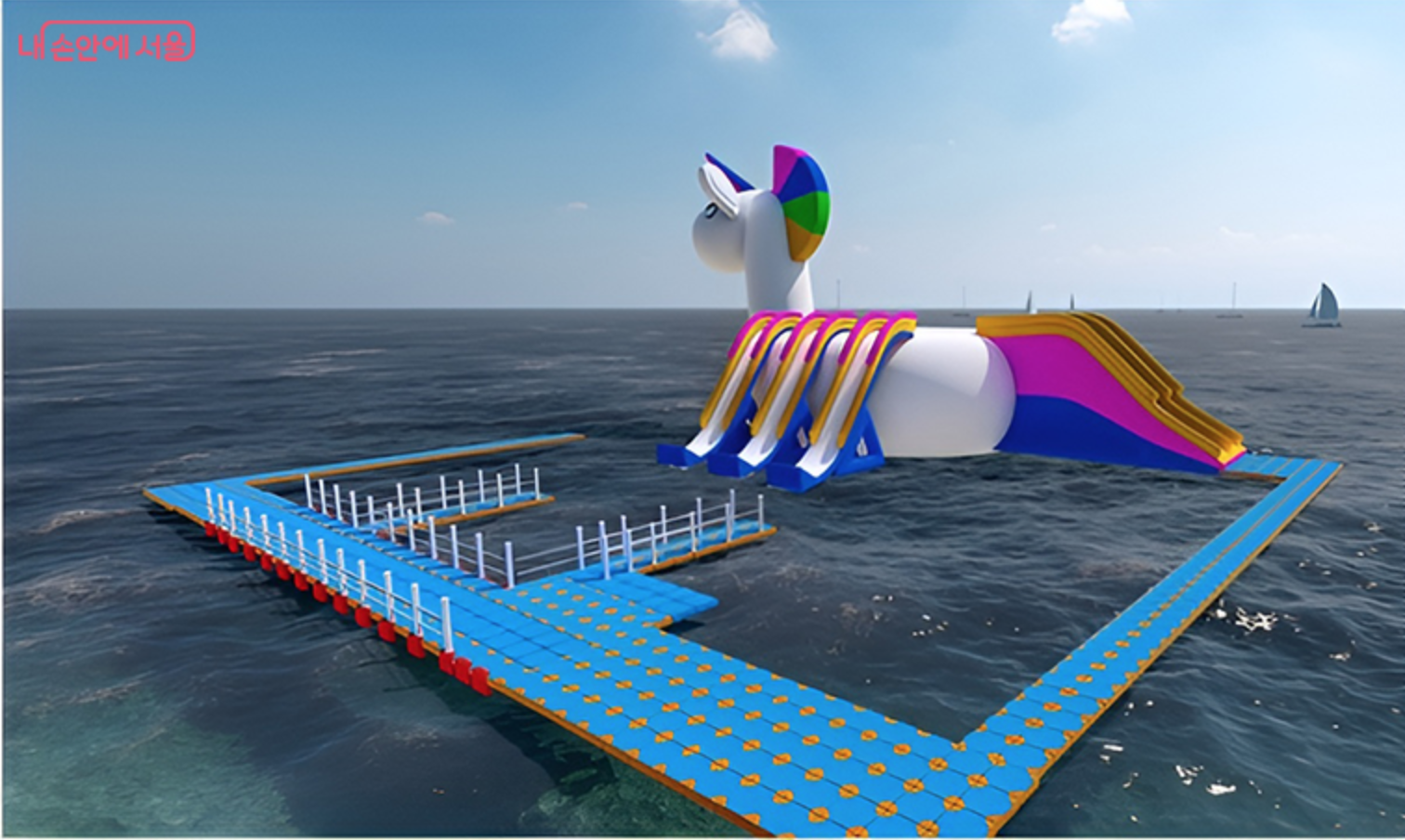 한강99팡팡: 8m 높이 워터슬라이드 (사전 신청 필요).