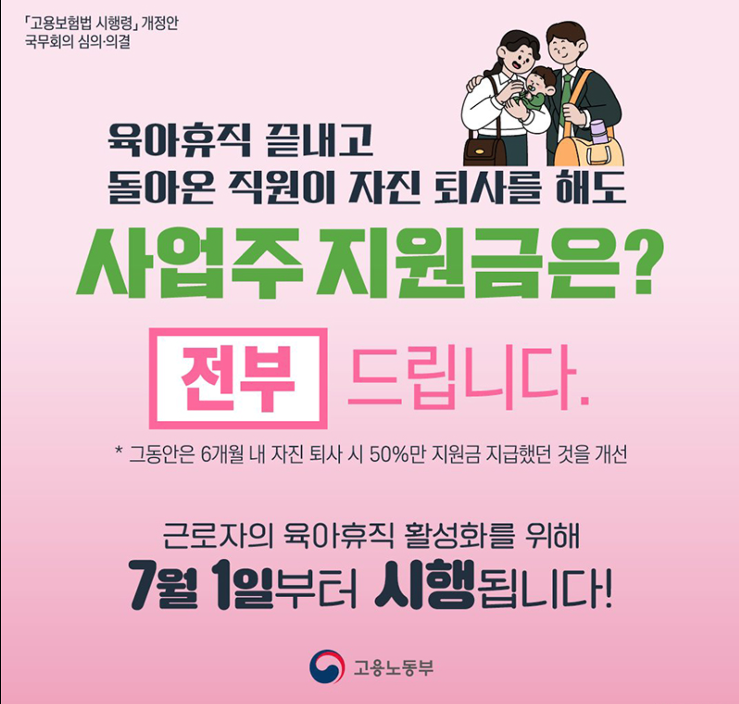기존에는 복직한 직원이 6개월 이내에 자진 퇴사할 경우, 사업주는 정부로부터 받을 수 있는 지원금의 절반만 수령할 수 있었습니다.