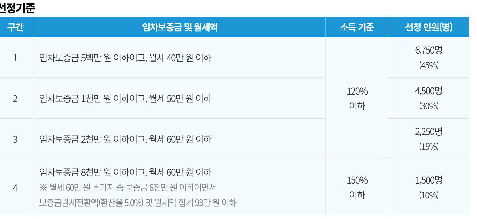 - 주거 형태: 무주택자이며, 임차보증금 및 월세 조건 모두 충족