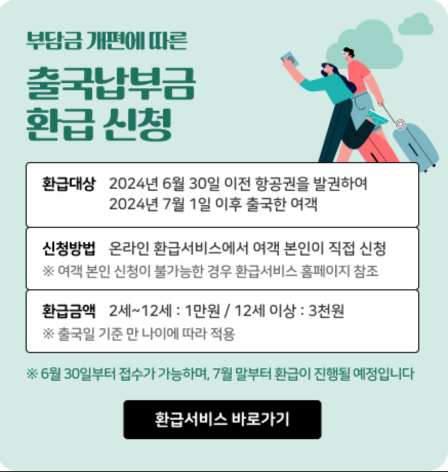 공항을 이용하면서 본의 아니게 납부된 출국납부금, 공항이용료 등의 과오납 금액을 되돌려받는 절차죠.