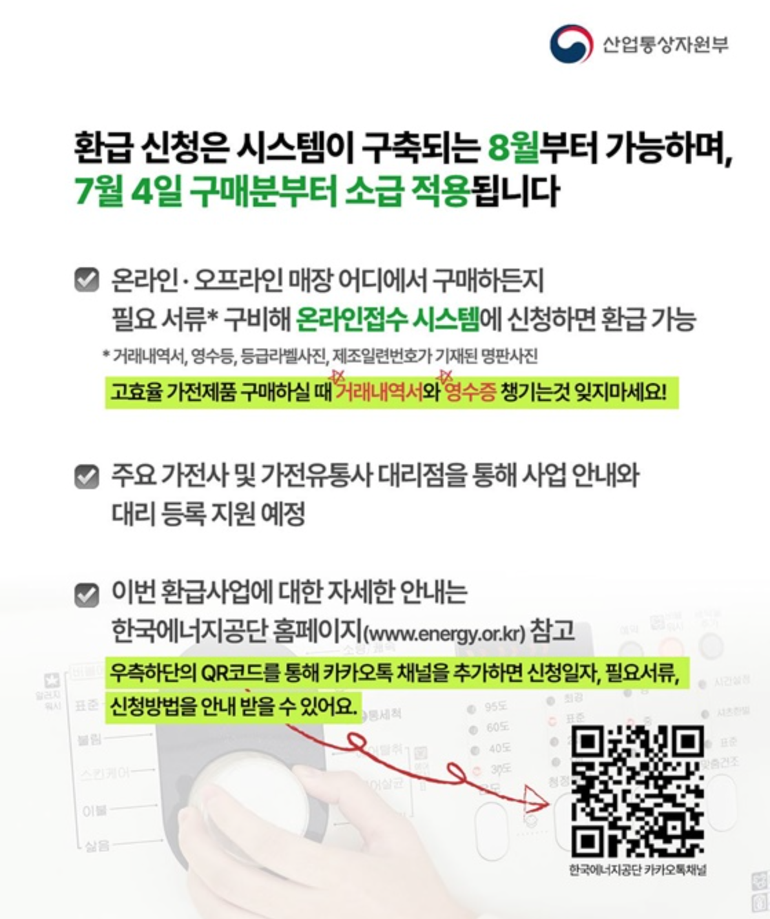 👉 신청 사이트: 으뜸효율 가전제품 구매비용 환급사업 카카오채널 (QR 코드)