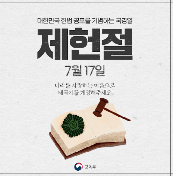 7월 17일은 대한민국 헌법이 처음 제정된 뜻깊은 날, 제헌절입니다.