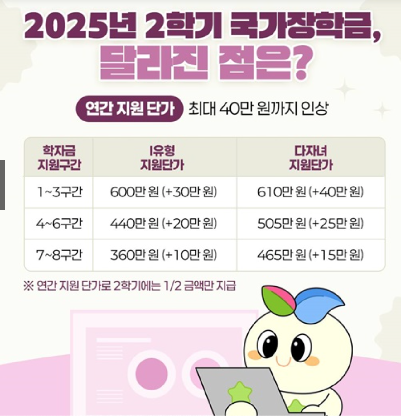 2025년 2학기는 지원단가 인상, 주거안정장학금 신설 등 변화가 있어 반드시 최신 안내를 확인해야 합니다.