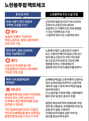 하지만 사용자 범위 기준, 쟁의 대상 범위, 손배 제한 적용 요건이 구체화되지 않는다면, 노동계와 경영계 모두 불안정한 상태에 놓일 수 있습니다.