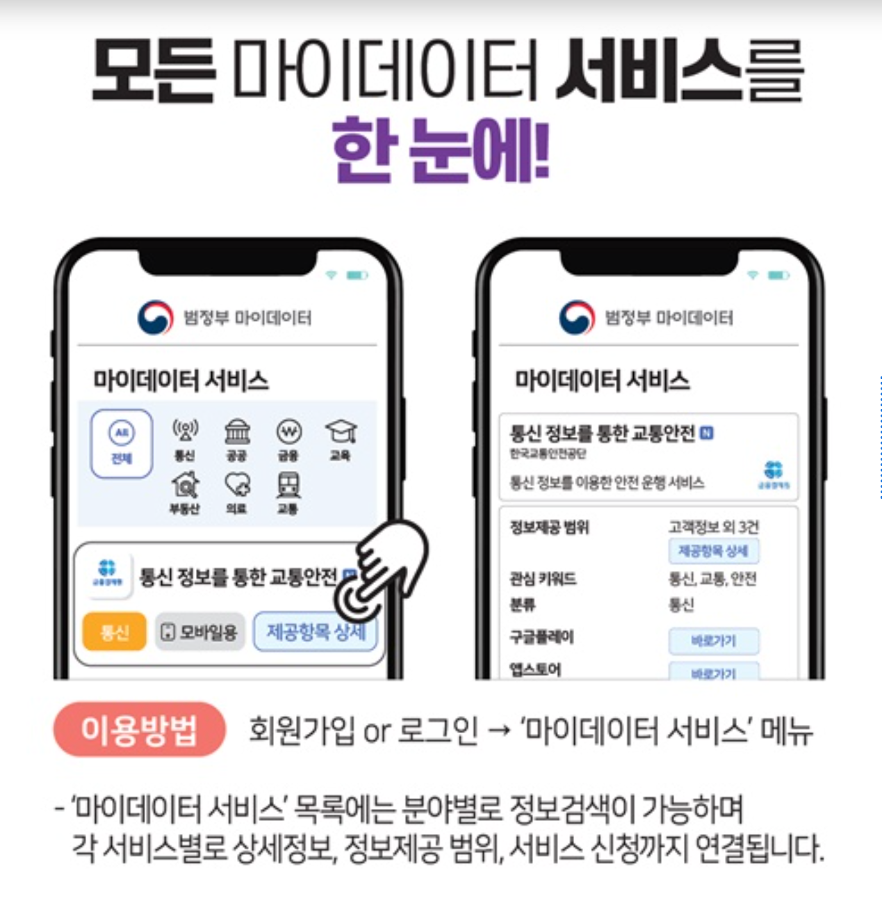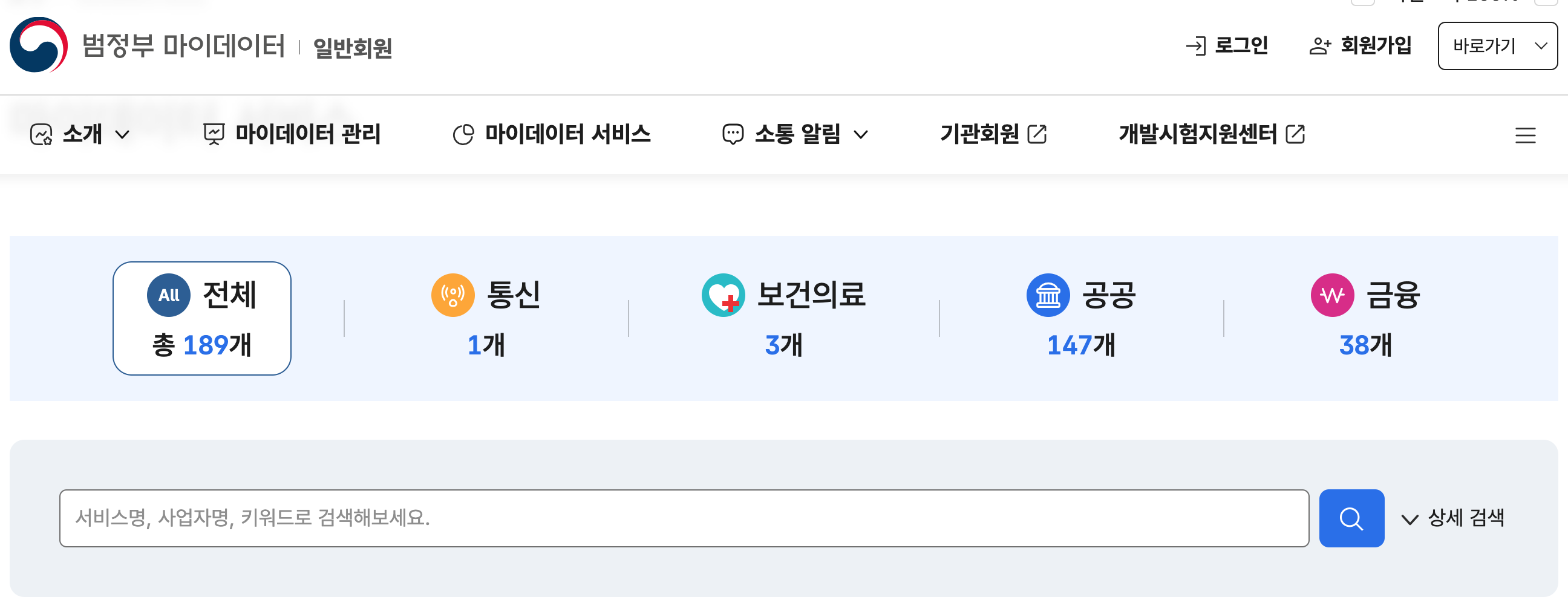내 정보를 한눈에 확인하고 안전하게 활용할 수 있는 범정부 마이데이터 지원 플랫폼입니다.