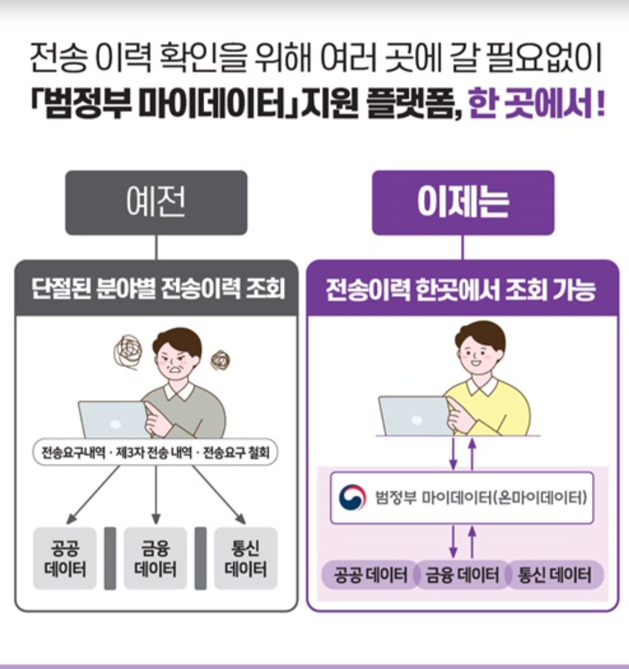 「범정부 마이데이터」 플랫폼, 바로 ‘온마이데이터’(onmydata.go.kr)를 통해 공공, 금융, 통신 등 분야별 데이터 전송 이력을 한눈에 확인하고, 철회 요청까지 한 번에 처리할 수 있게 되었기 때문입니다.